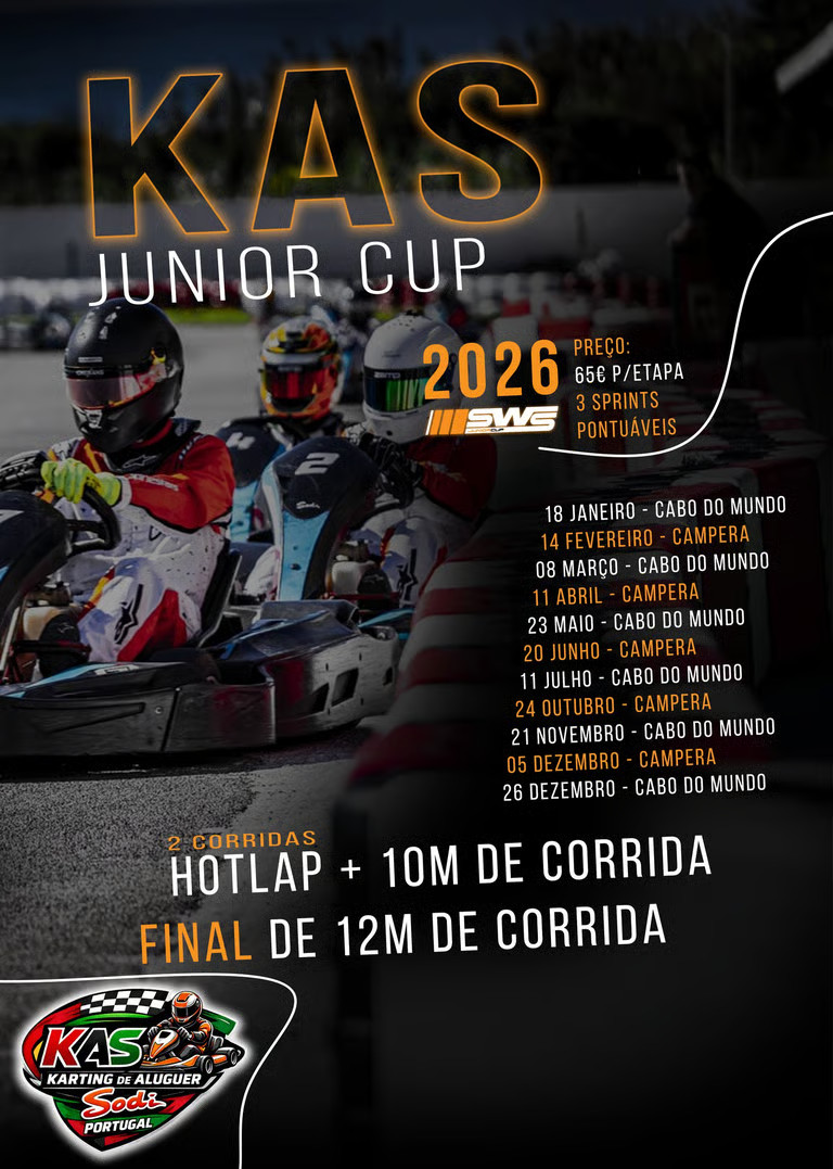 Campeonato dedicado aos jovens pilotos, com um ambiente competitivo, seguro e formativo. A KAS Junior Cup promove o desenvolvimento técnico e desportivo, incentivando o fair-play, a aprendizagem e a evolução dos pilotos mais novos no karting de aluguer.. Mais informações em https://www.trackseries.events/campeonatos